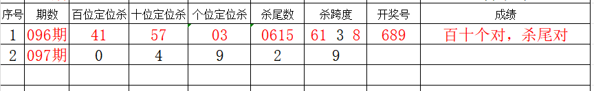 金莱3D第097期:上期银胆6对,本期和值主看单数
