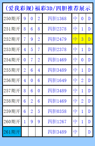 福彩3D第261期图文(爱我彩规),四胆推荐展示