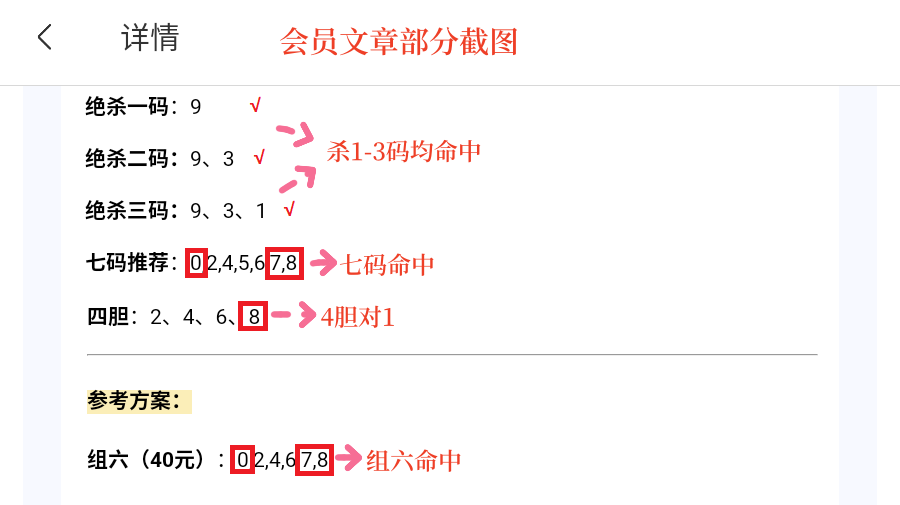 会员文章中7码、组六均命中,4胆对1,三码定位中百位正确。