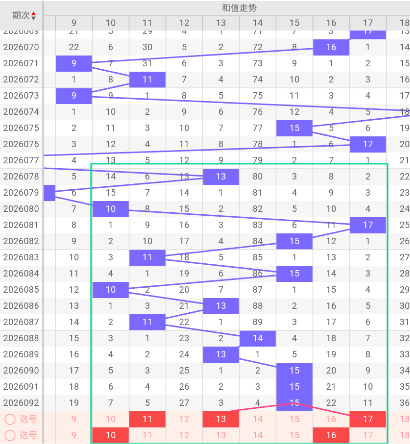 和值推荐:10、11、13、16、17
