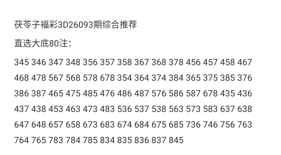 茯苓子福彩3D26093期综合分析,上期组六命中