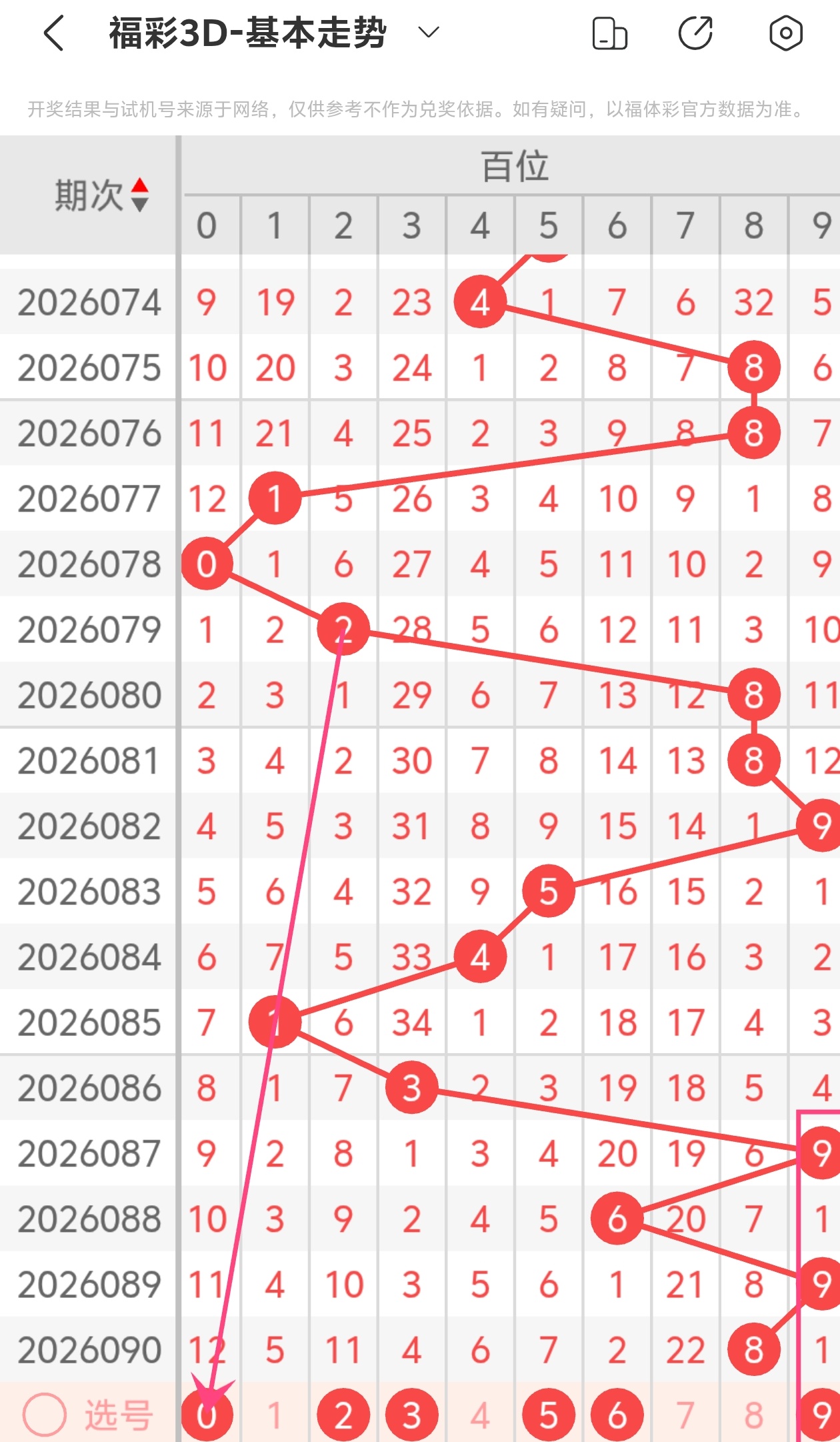 下面是福彩3D的百位走势图分析