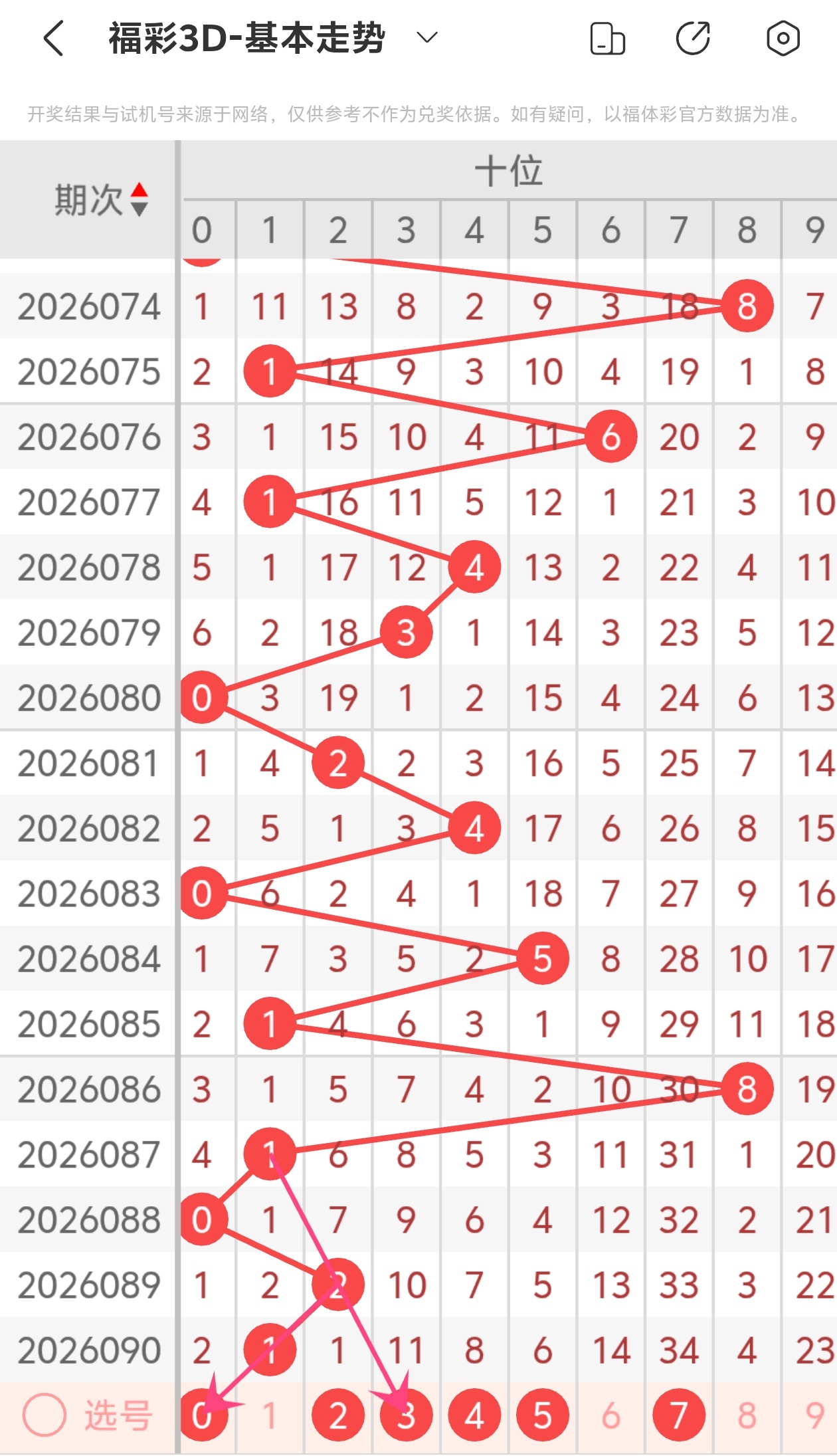 下面是福彩3D的十位走势图分析