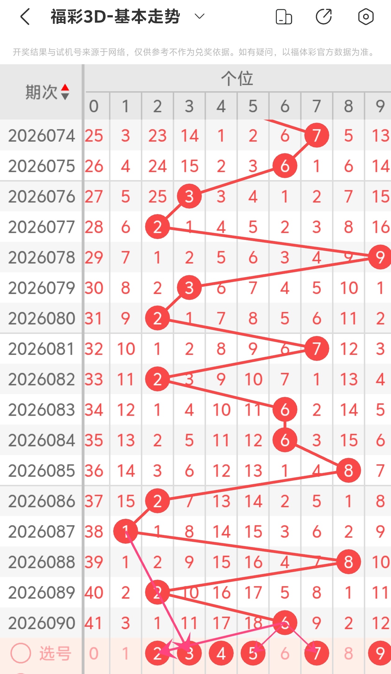 下面是福彩3D的个位走势图分析