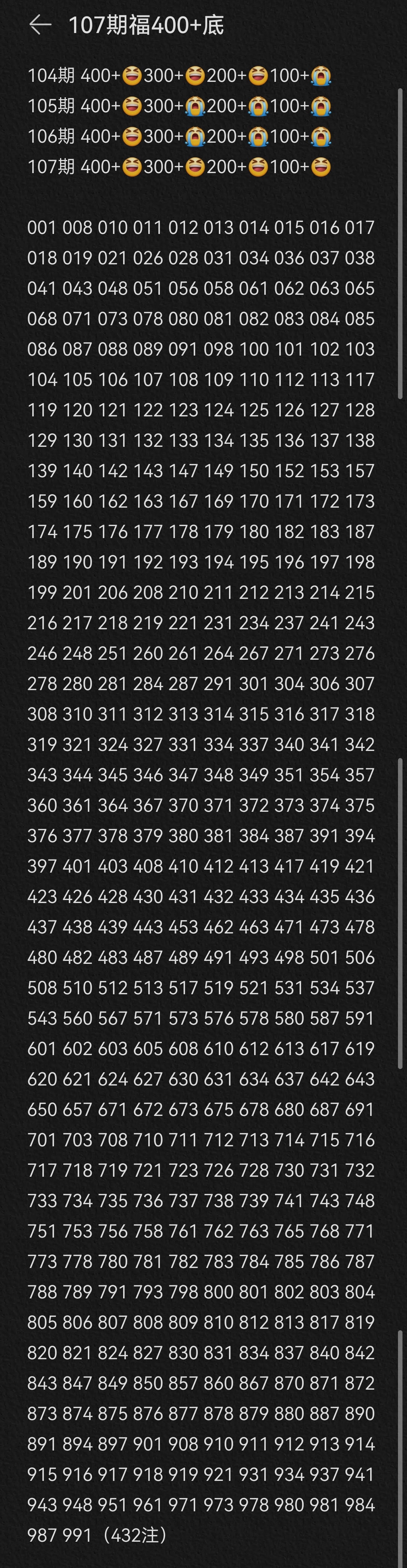 初闻你名·免费版·福彩3D第107期丨上期中七码复式新增400底