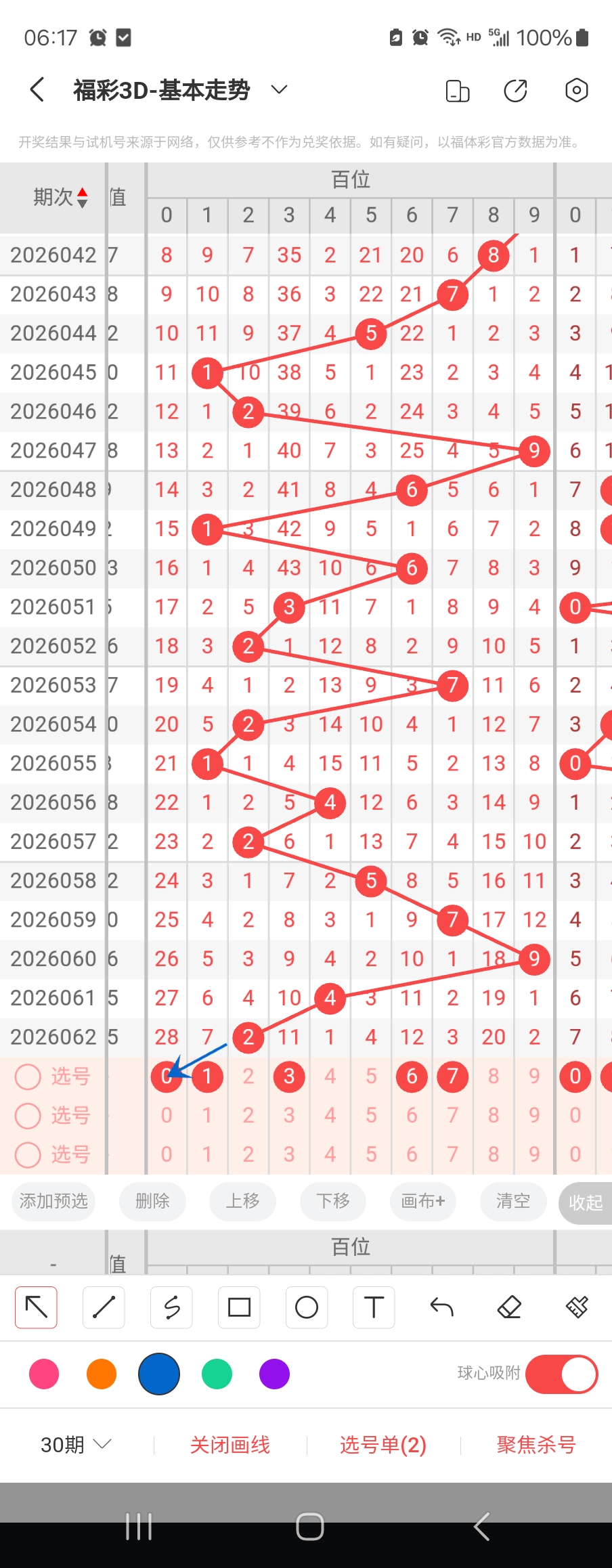 百位走势标注如下图;