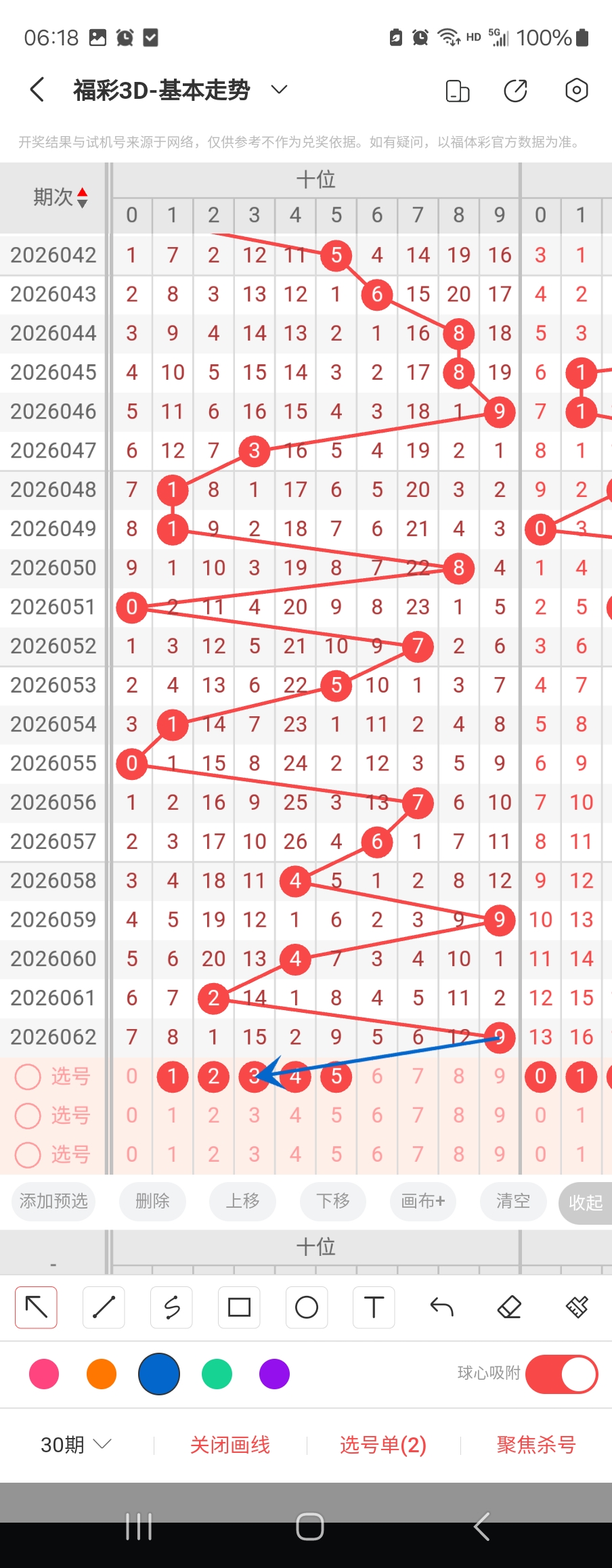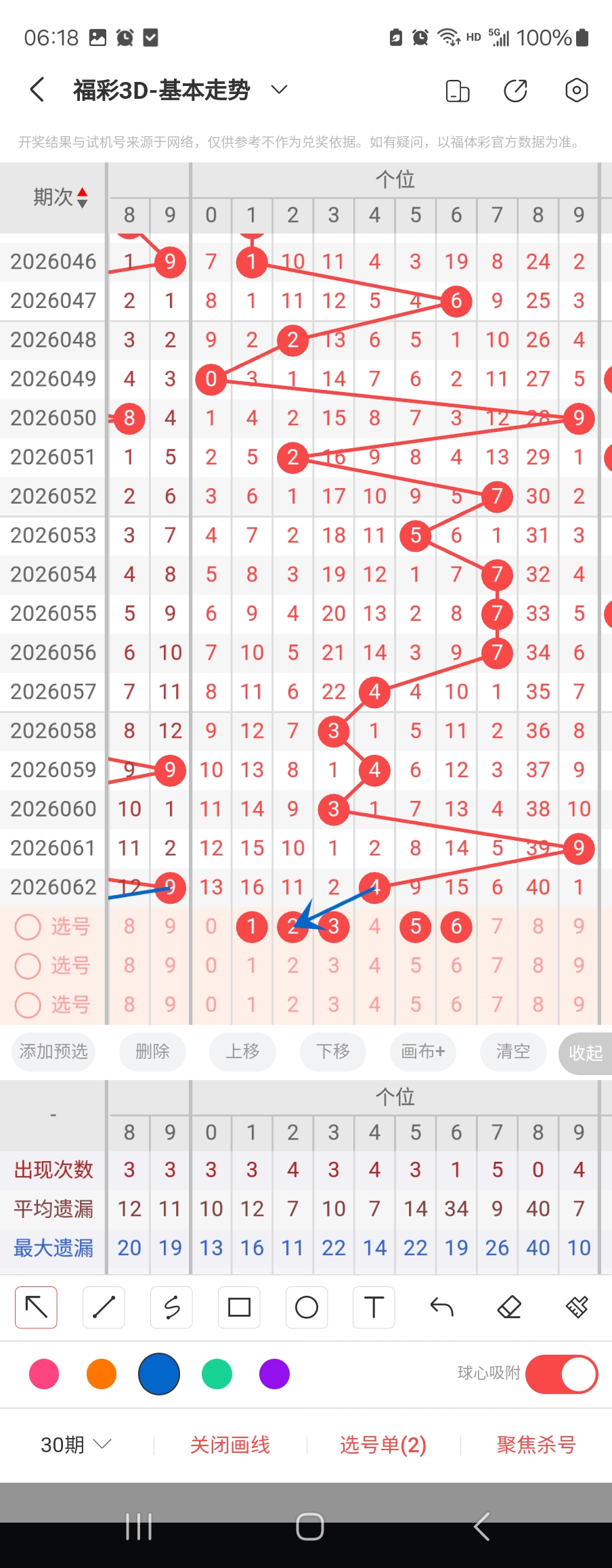个位走势标注如下图;
