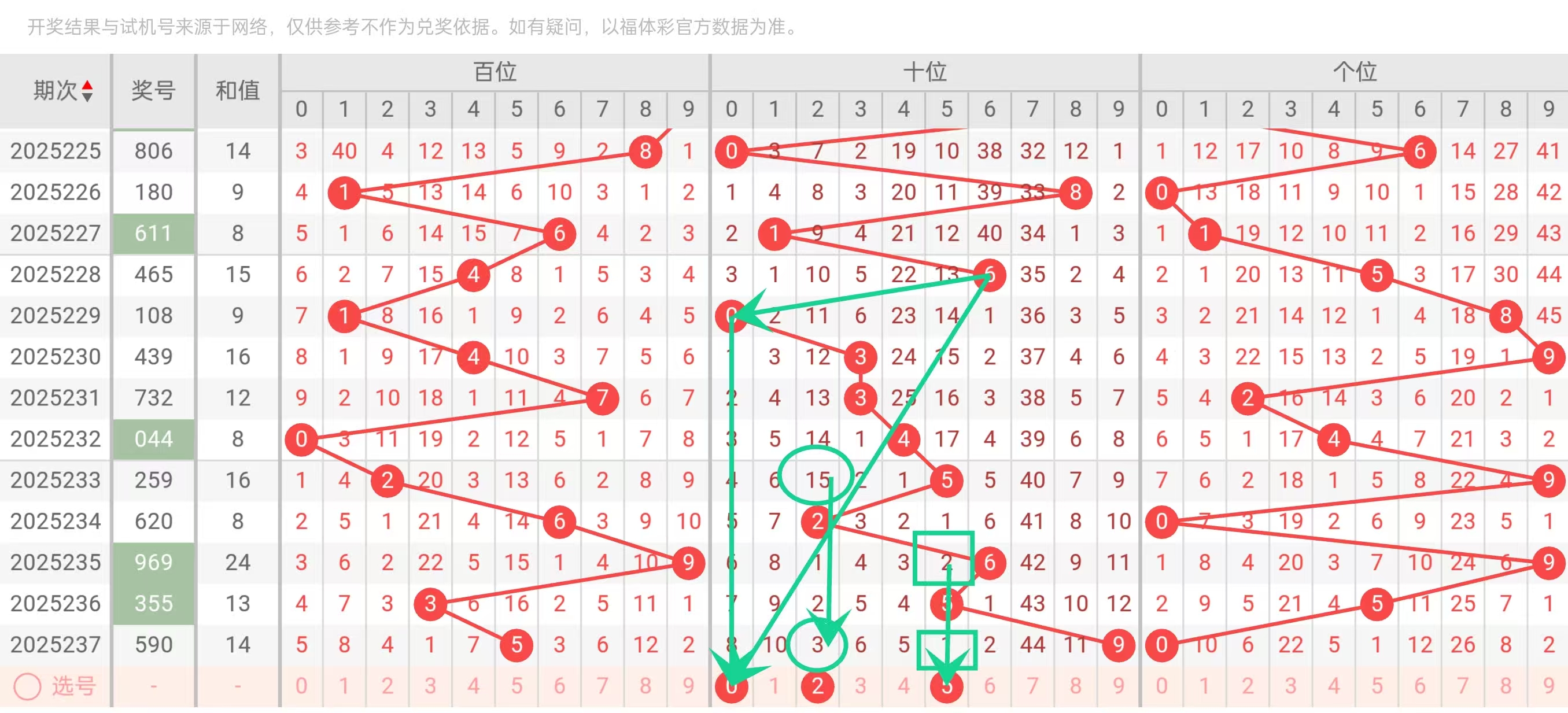 我将从百位、十位和个位的号码分布特征出发,结合频率统计、冷热号分析以及常见趋势规律,逐一进行排除与推荐。以下为详细分析过程: