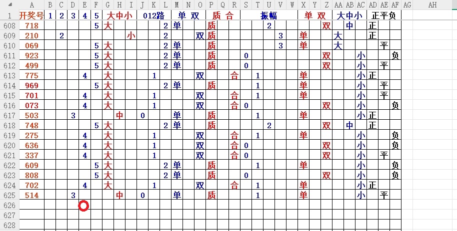 如上图56,大中小分析,中号3456出胆码,最低1个胆码,重点34