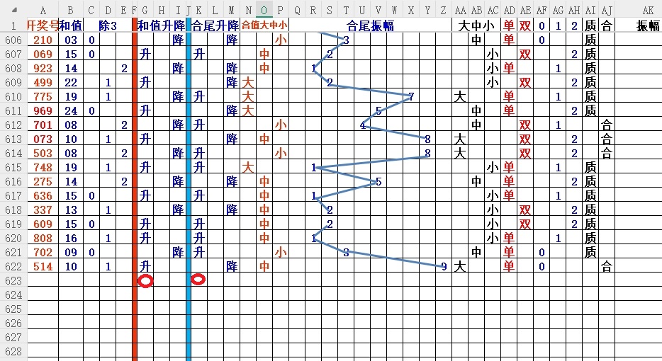 如上图2,012路分析,01路尾走比较好,关注0369147尾;