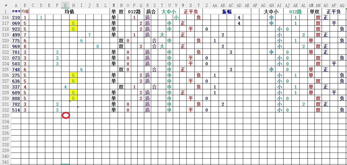均值:就是开奖号每各数的总和除3,然后得到的余数,如果不够整除可以+1,-1,直到被整除得的数就是均值