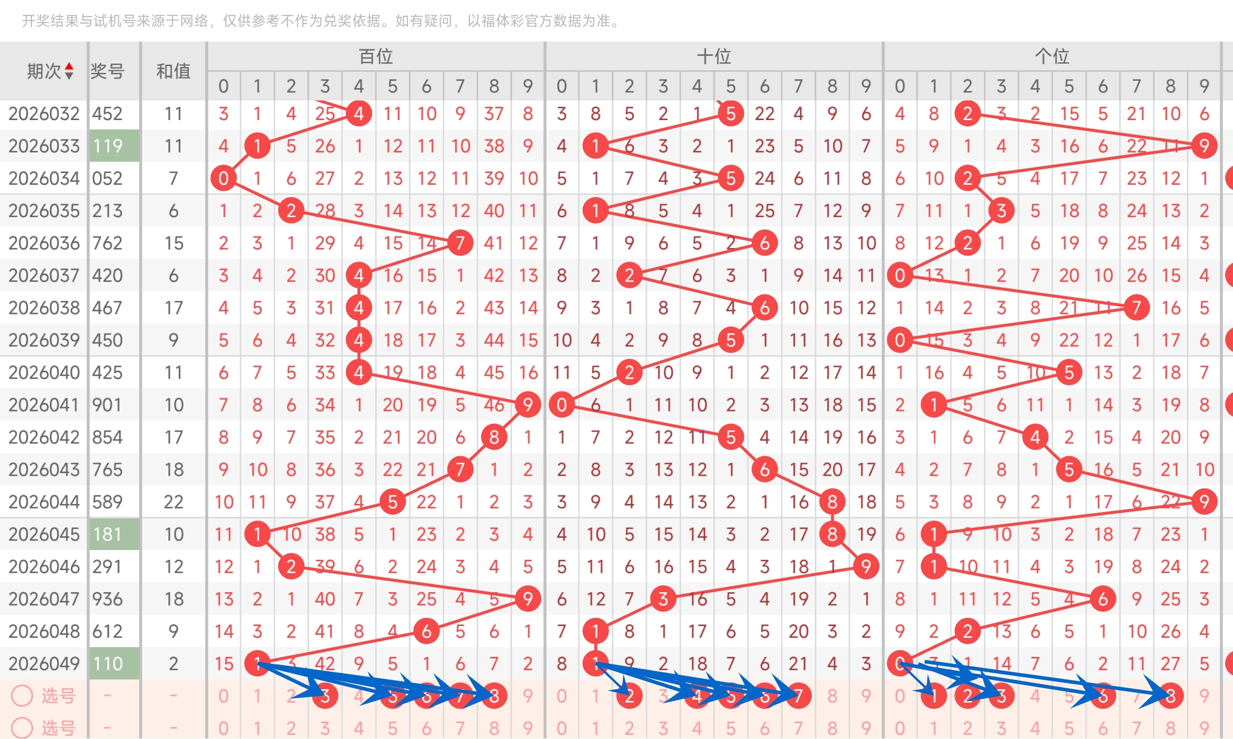 第2026032期福彩3D分析文章,5码复式命中452。