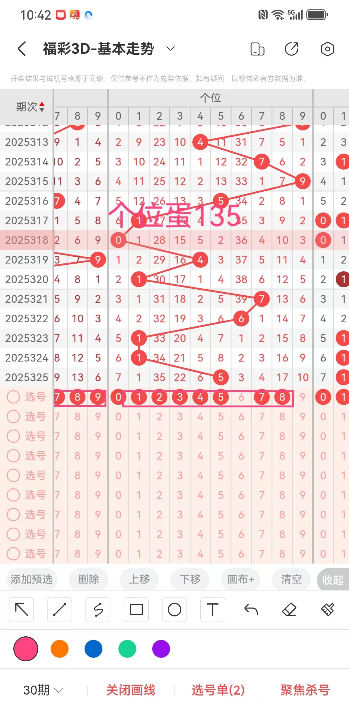 ③个位012路比:近5期012路比为:1:3:1,0路号码依次开出6,0路中大小1:0,奇偶比0:1,1路号码依次开出711,1路中大小比1:2,奇偶3:0,2路号码依次开出5,2路中大小比1:0,奇偶0:1,通过以上对比分析(1325890)有可能开其一