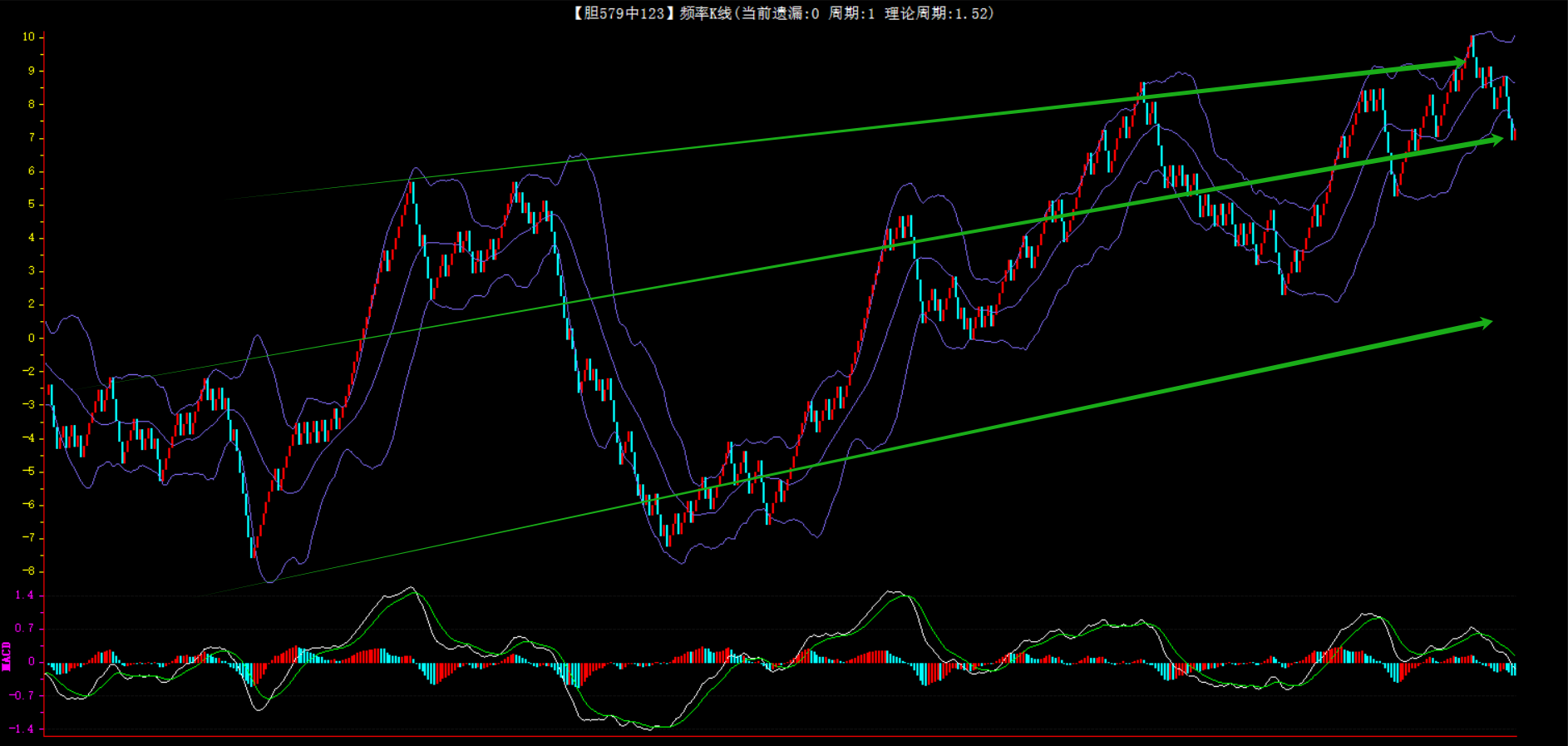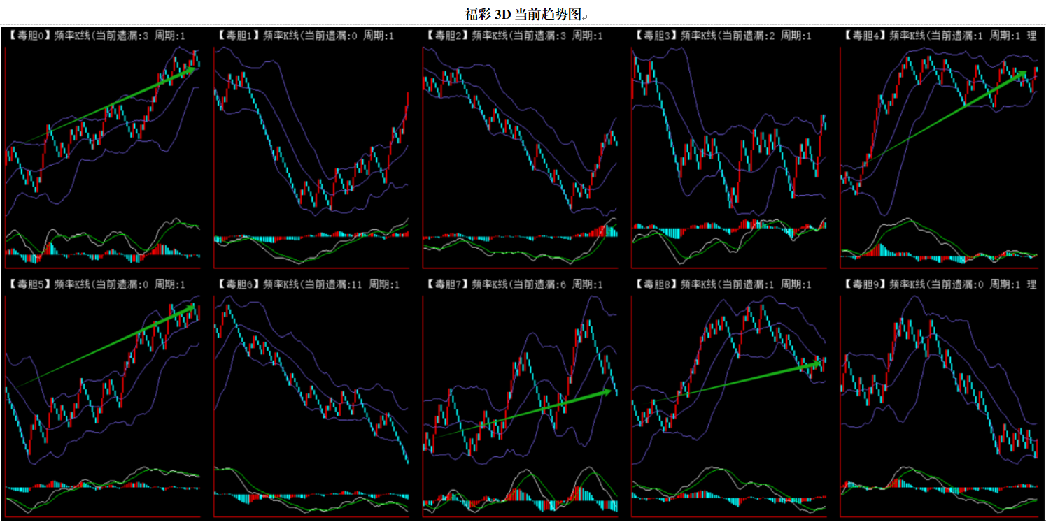 整体趋势上行,上边沿线趋势向上,下边沿趋势也是向上,节点震荡,当前遗漏1期,本期关注。