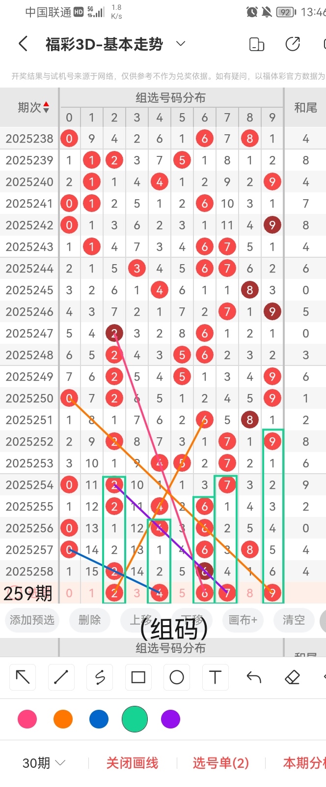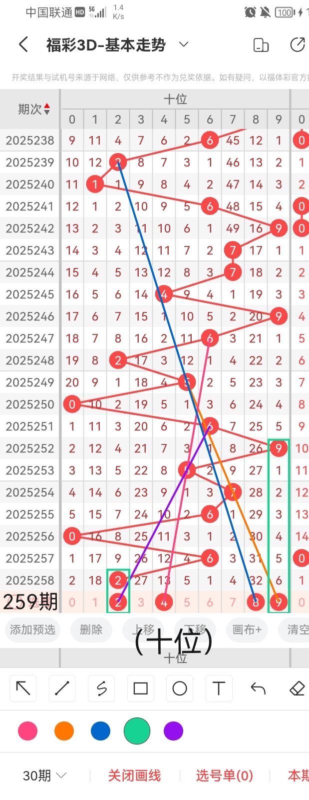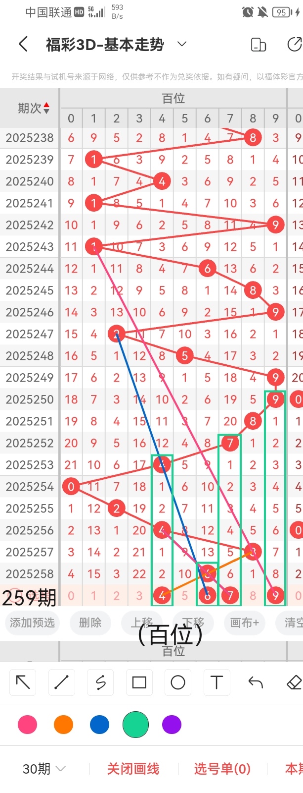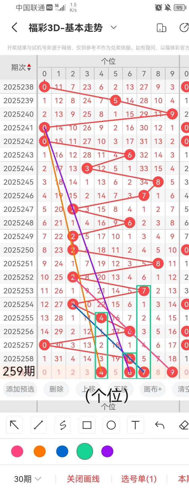 通过以上对上期的简单回顾,下面进入2025259期(下面简称本期)的选号分析: