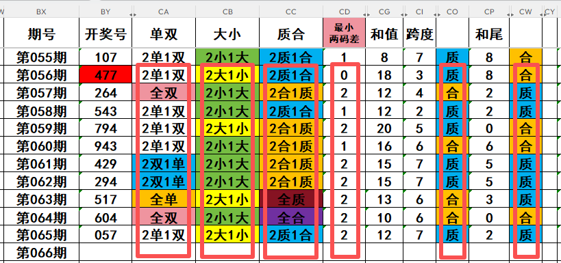 5,跨度10天当中,质数(12357)开出了6次,合数(04689)开出了4次,近期需重点关注开奖号码合数跨度的回补!