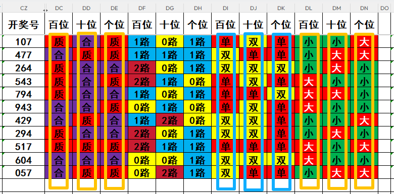 2,目前开奖号十位号码球11天当中,质数(12357)开出了4次,合数(04689)开出了7次,本期重点关注开奖号十位号码球质数的回补!