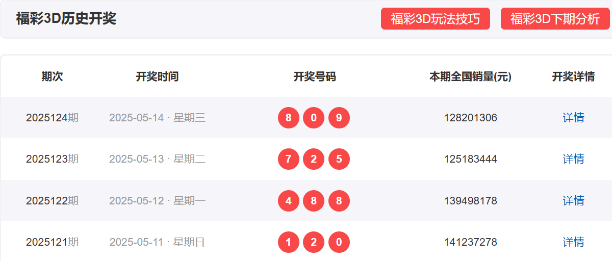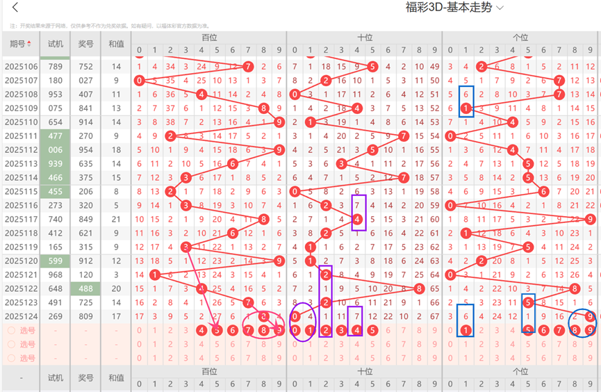 5、综上所述福彩3D-第25125期定位推荐信息如下: