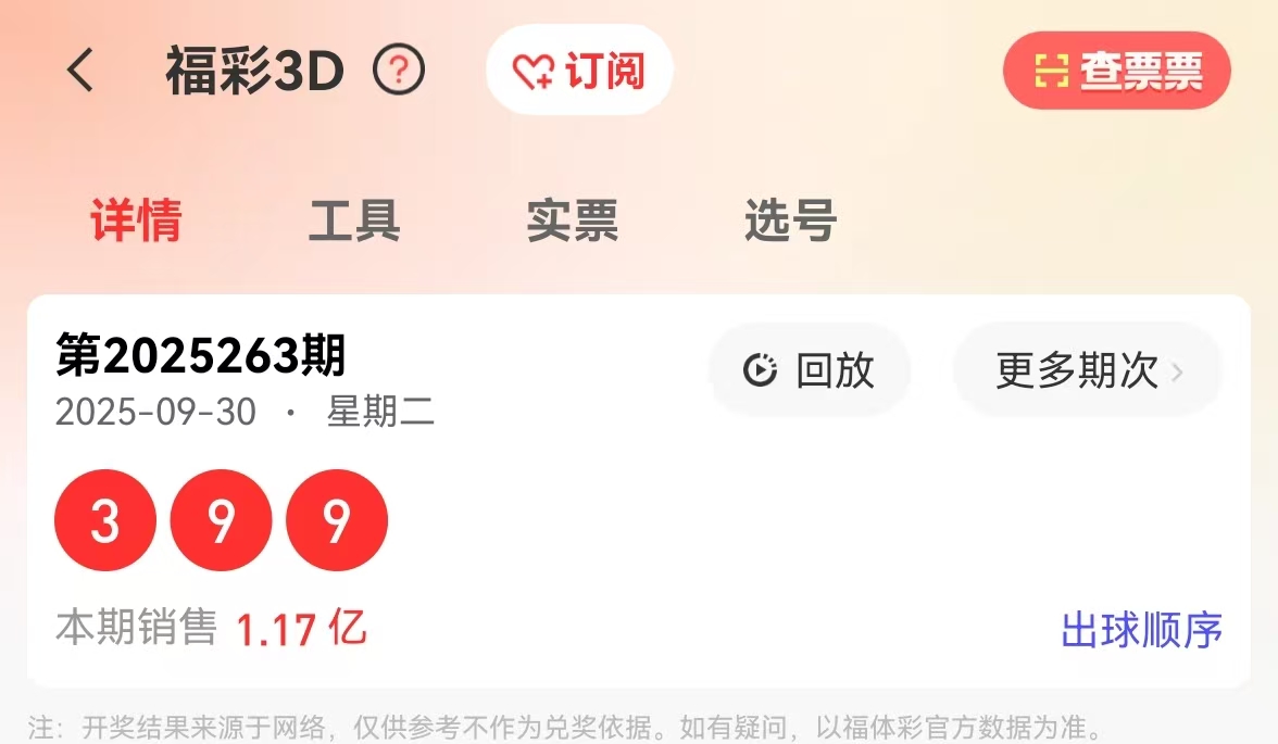 上期开奖号码为:399,奖号形态:组三,大小比:2:1,奇偶比:3:0,跨度开出6跨,和值:21点,本期关注2大1小,1奇2偶