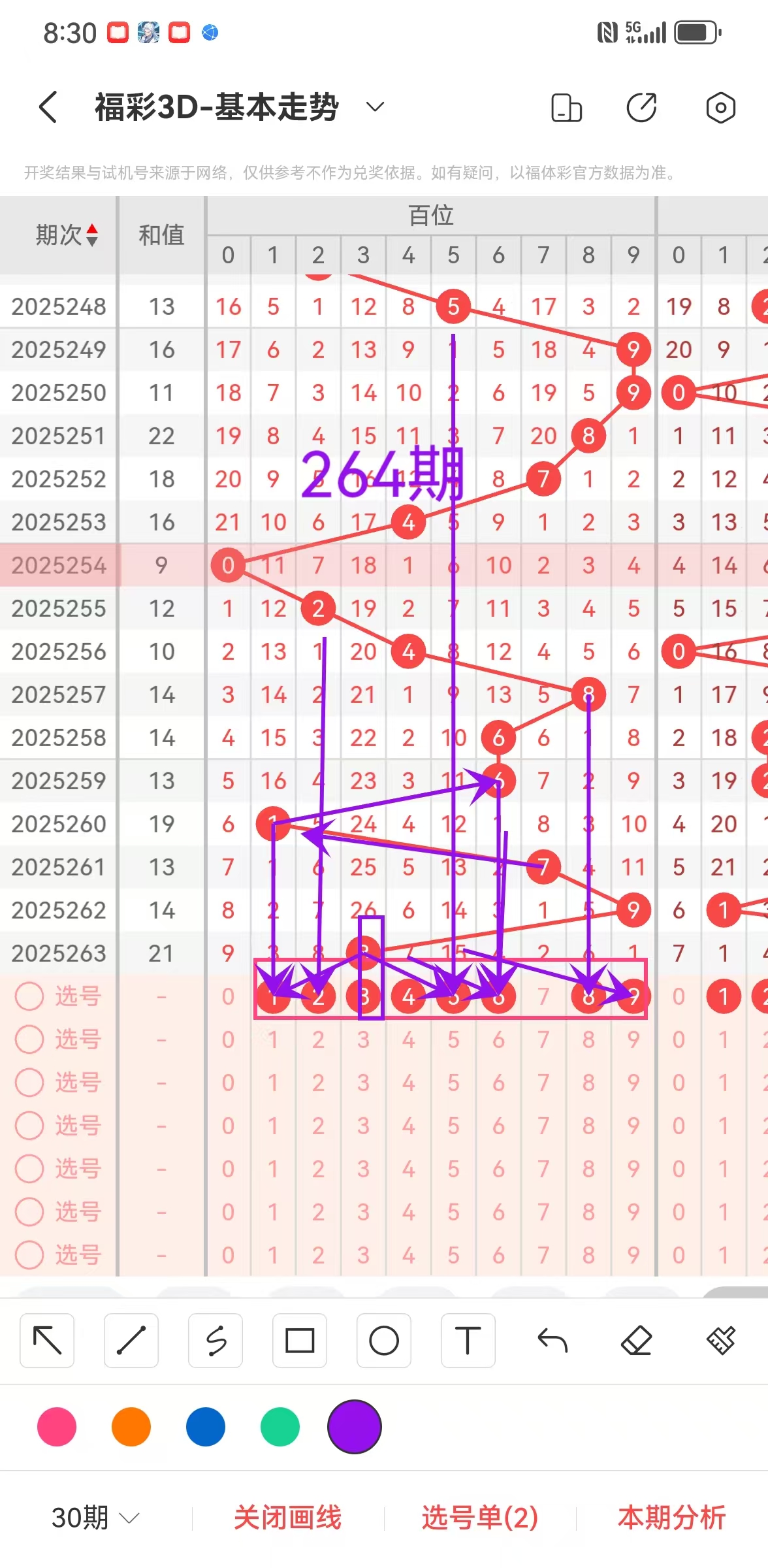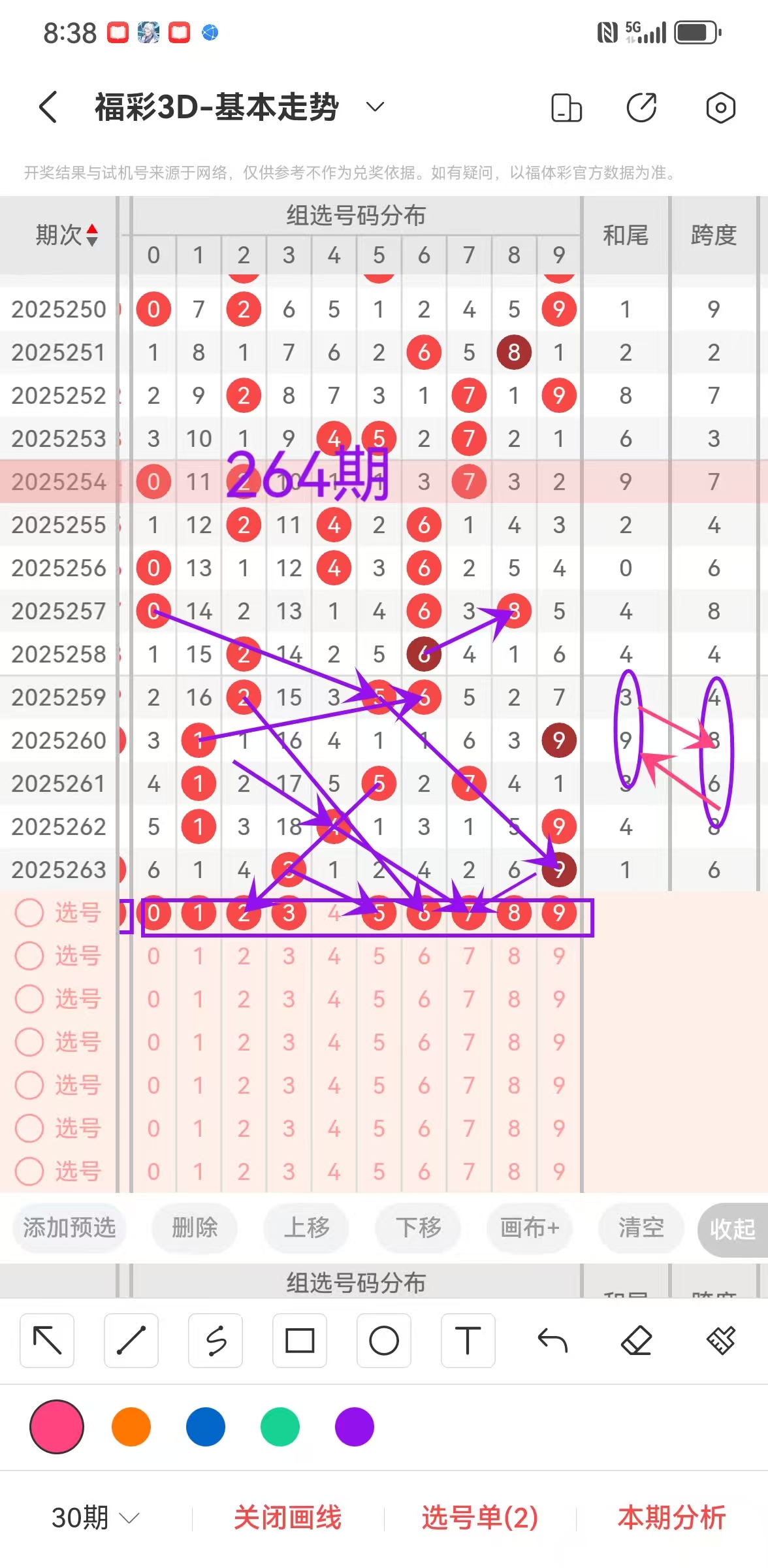 以上分析数据为:福彩3D第264期,啤酒哥本人推理和18年购彩经验所得,助力您选号,愿君中大奖