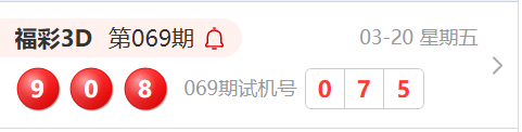 福彩3D第069期开奖结果为:908