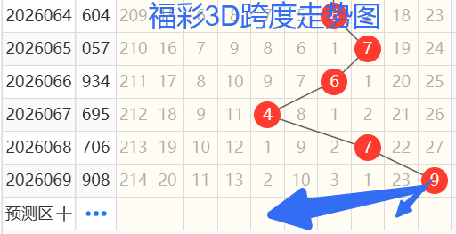 依次是76479跨度,按照路数转换关系来看,那么跨度我们暂定258147跨 ,本期个人比较看好 4 8 跨。