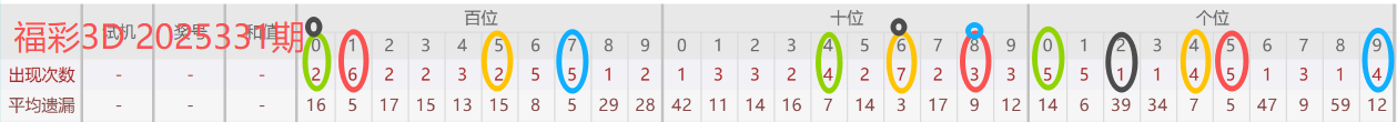 2、平均遗漏值:指3D某个号码在开奖以来平均多少期出一次,计算公式为:平均遗漏值=总期数/该类号码的总中出次数。