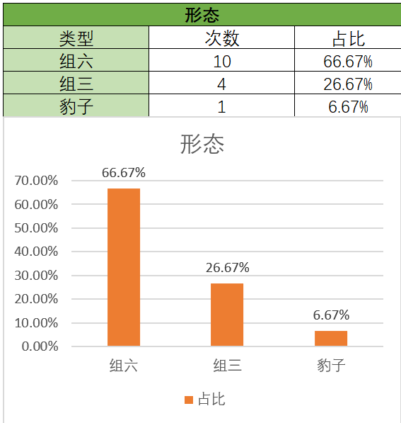上期三种形态占比不变,组六最优,组三次之。