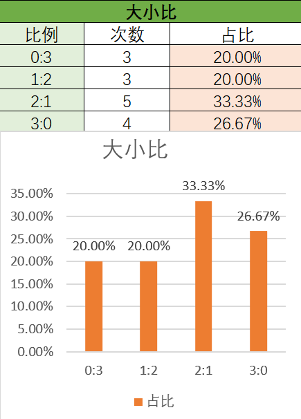 大小比1:2很热势,防2:1;