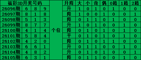 上期会员文章定位三码中头奖 福彩3D第26106期号码分析推荐