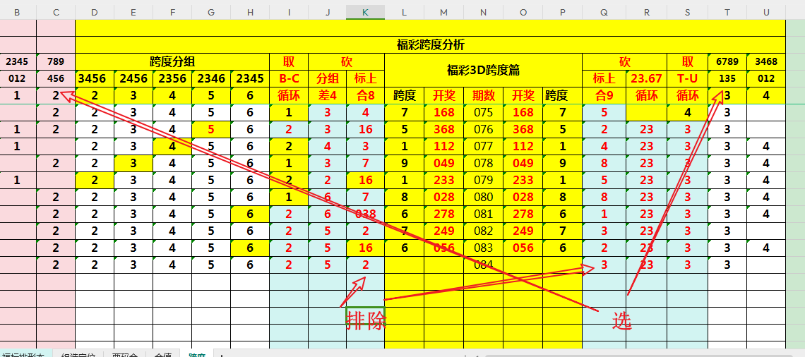 跨度之义,通俗易懂:即三个数字中,最大数与最小数的差值。遵循前文逻辑,连贯衔接,搭建跨度研判表格,清晰直观,以供参考:
