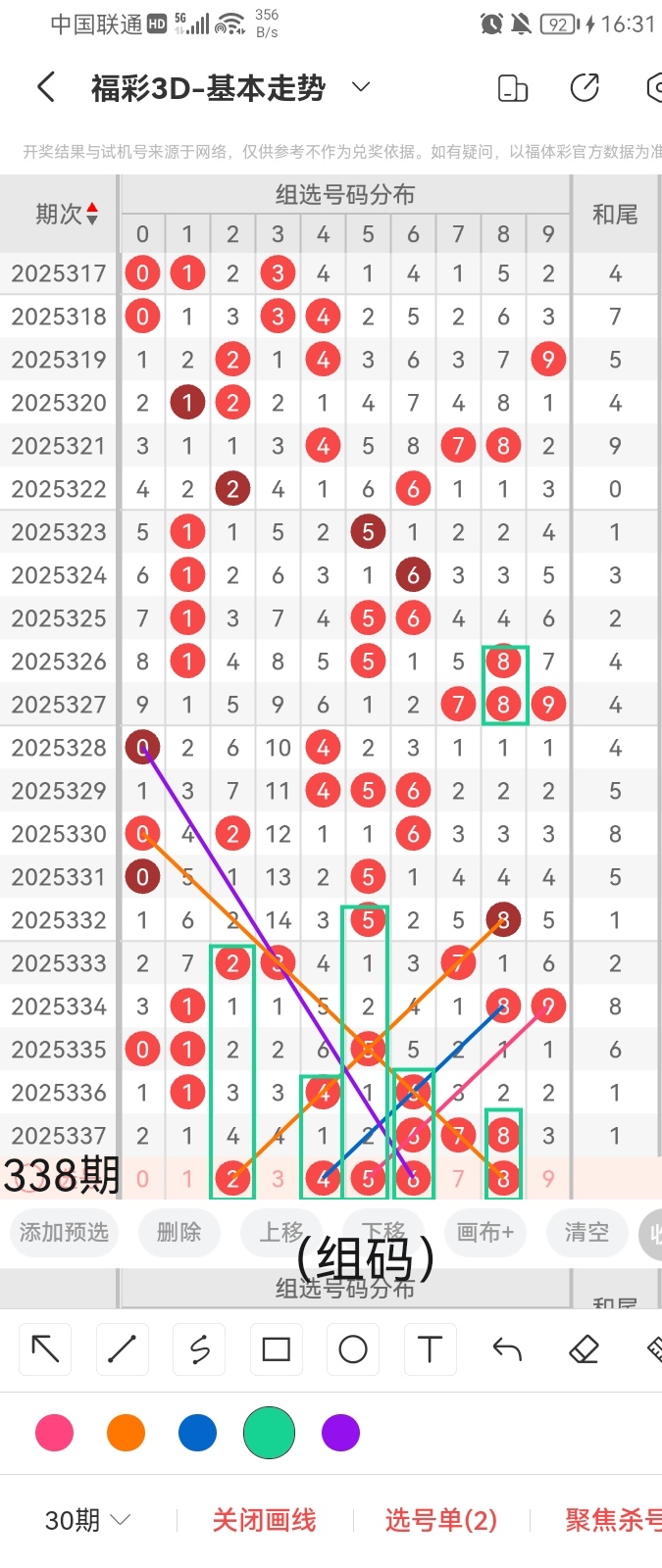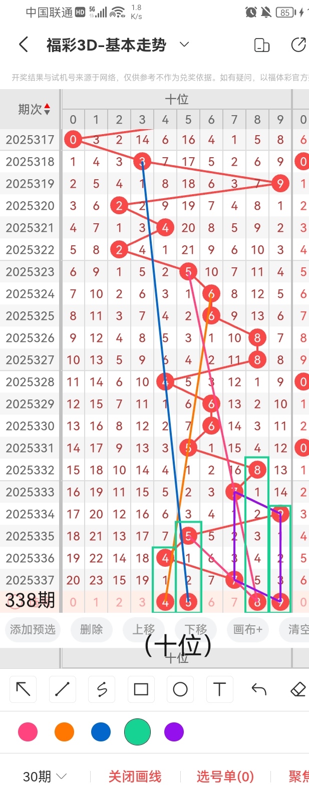 通过以上对上期的简单回顾,下面进入2025338期(下面简称本期)的选号分析: