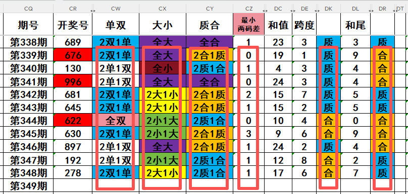 3,目前开奖号个位号码球11天当中,质数(12357)开出了5次,合数(04689)开出了6次,本期重点关注开奖号个位号码球质数的回补!