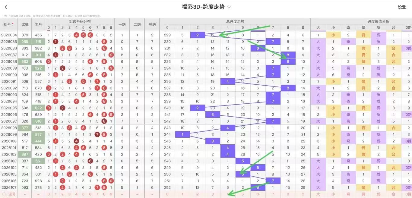2026108期福彩3D跨度走势图如下: