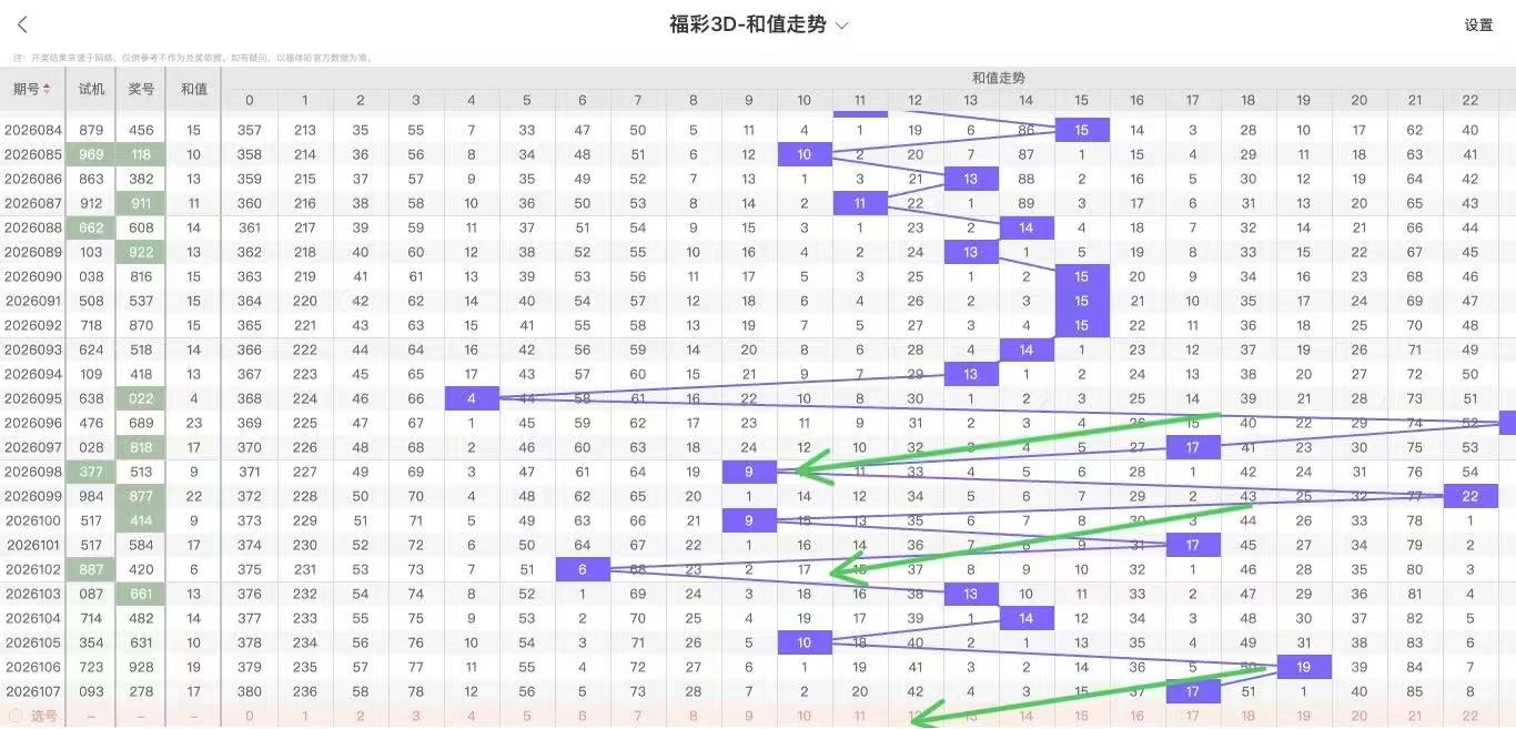 2026108期福彩3D和值走势图如下:
