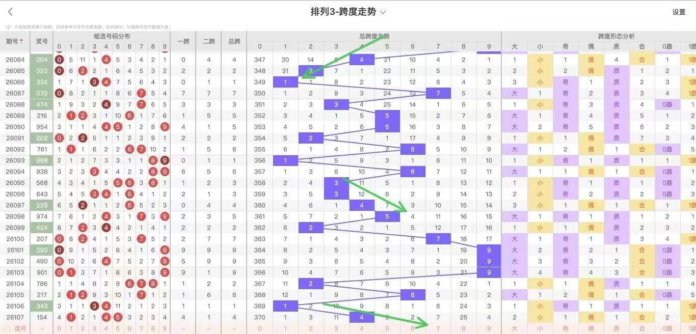 根据走势对跨度观察统计得到以下分析结果: