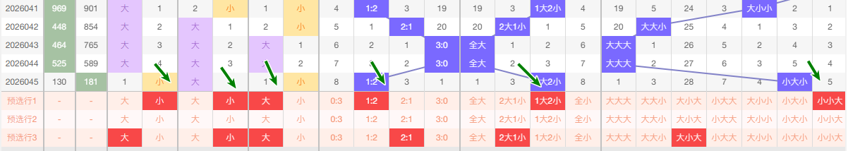 最近的5期当中个位大数出现的频次2次 小数出现3次 ,趋势平和 本期看好继续走大