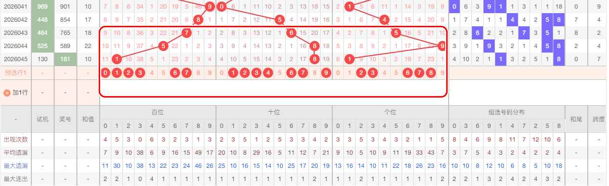 上期百位开出1,本区与上期的跨度为4,本期重点关注 167,本期百位推荐关注:012367