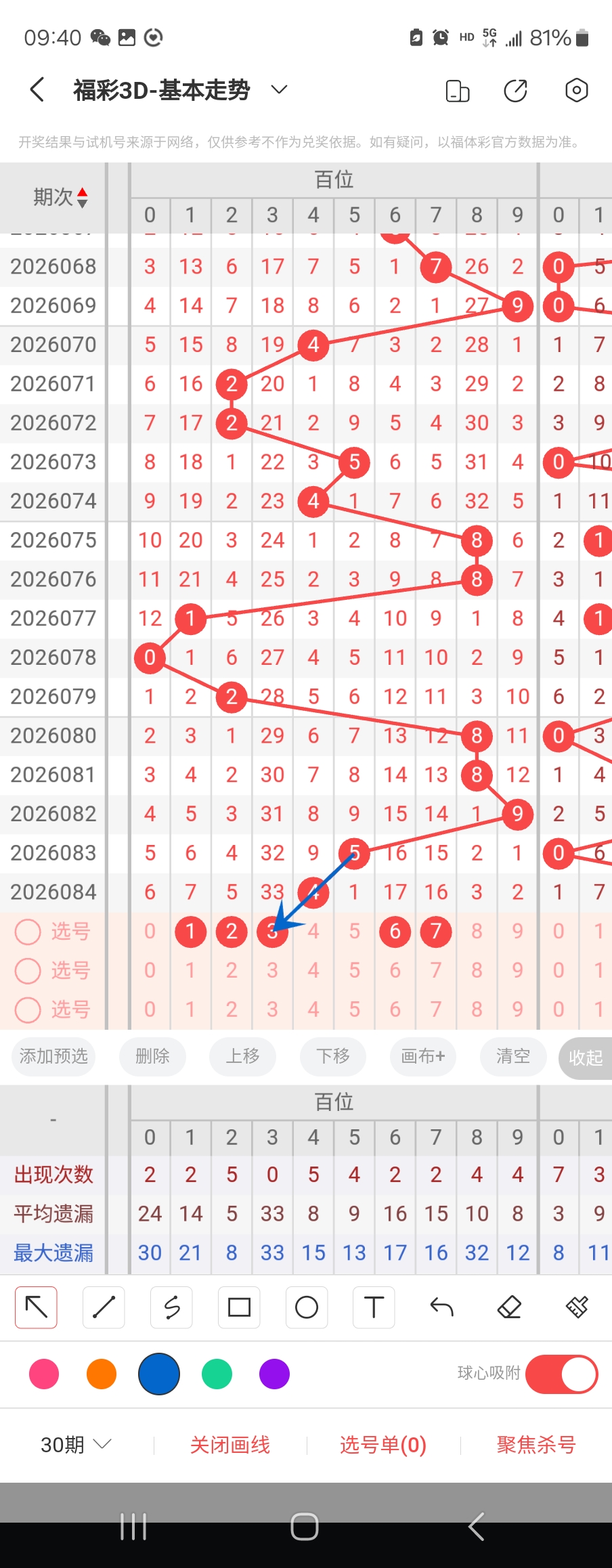 百位走势标注如下图;