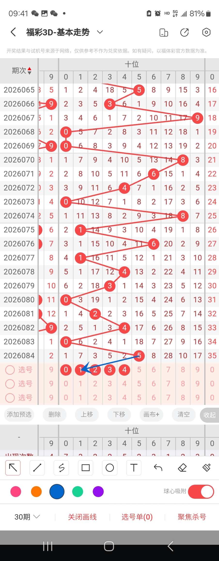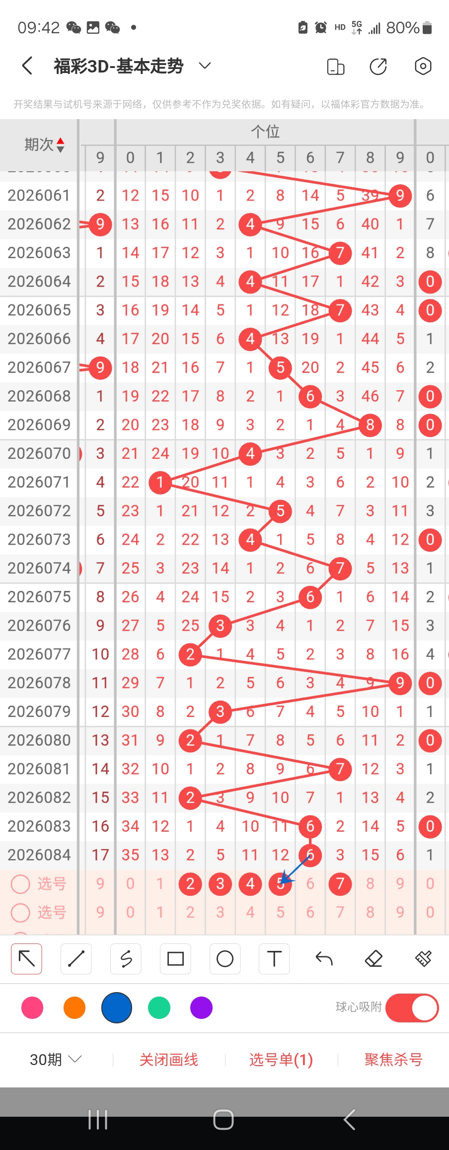 个位走势标注如下图;