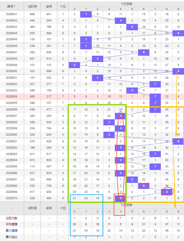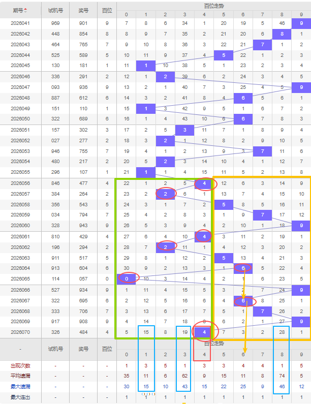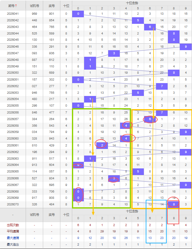 福彩3D第2026071期个位先分析奇数偶数,近十五期开出奇数号7期,开出偶数号8期,开出偶数号的概率比开出奇数号的概率相差不大。近十余期都是奇数偶数间隔开出的,上一期又开出了偶数4号,本期还是看好增加偶数,建议考虑遗漏期数较大的偶数号,比如0号、2号遗漏十期以上且达到平均遗漏期数和最大遗漏期数,都可以防冷号开出。另外重号近十五期只有7号开出过三重号那么本期继续考虑上一期的4号重号开出。
