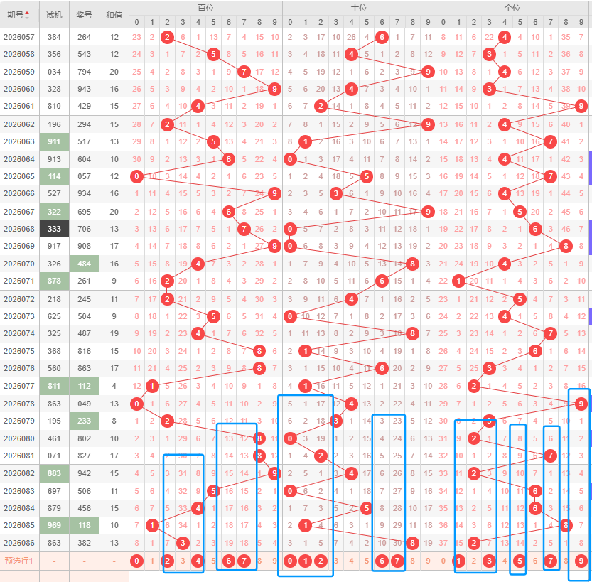 百位:百位开号上期开出了3,再往前一期开的是1,上期的振幅为2,本期振幅看好稍微变大,看好振幅在0到4之间;从开号位置来看,本期看好中间的号码,其次是左边的;从012路走势来看,上期开了0路,本期看好0路和1路,防2路;从奇偶数来看,上期开了奇数,本期看好偶数;