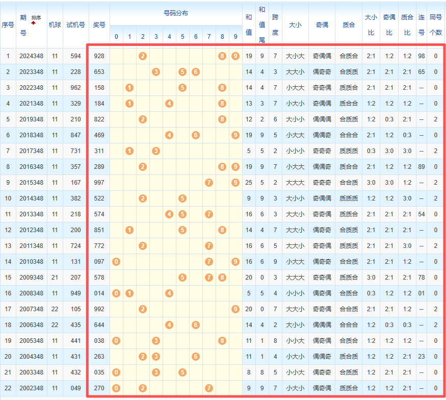 1、统计往年同期开奖号码