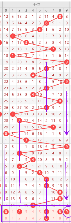 十位近期0,2路号码近期走热,上期回走1路,本期可重点关注0路,2路号码;