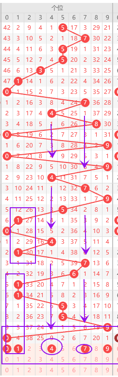 个位走势标注如下图: