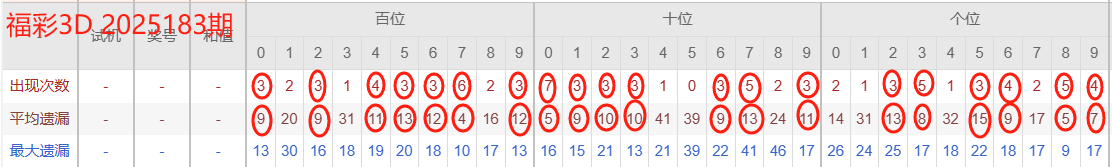 2025180期开奖号码260,我们可以看出近30期百位2出现3次,十位6出现3次,个位0出现2次。
