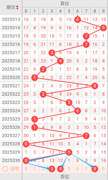 现在我给大家分析下,本期百位可能开出的号码,上期开出了0,318期开出了4号码球,319期开出了2号码球,320期开出了1号码球,321期开出了8号码球,322期开出了2号码球,323期开出了5号码球,324期开出了6号码球,325期开出了1号码球,326期开出了1号码球,327期开出了7号码球,328期开出了0号码球,329期开出了5号码球,330期开出了0号码球,根据就近几期的走势和历史30期内的走势对比,我们可以先考虑本期可能会出小号,下面我给大家推存百位可能开出的几个号,个人比较看好348,百位我们就先暂定这两个号。本期重点关1-8之间的号码,同时关注遗漏期数较小的号码。按最近遗漏走势,开了遗漏期数较小之后开遗漏期数大的可能性比较大。