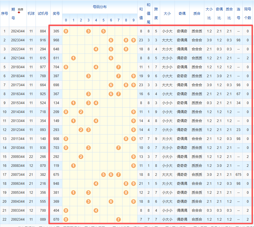 3、当个位开出5后下期开出:98677531593,经统计0号出0次、1号出现1次、2号出现0次、3号出现2次、4号出现0次、5号出现2次、6号出现1次、7号出现2次、8号出现1次、9号出现2次。观察发现35679号出现多次趋势好,本期可以考虑。