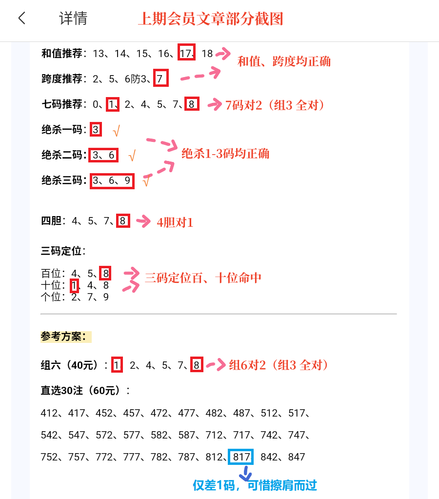 会员文章给出了更加完整的思路参考,各位彩友可以根据需要购买,希望能对大家有所帮助,结合自己的思路提高中奖率。