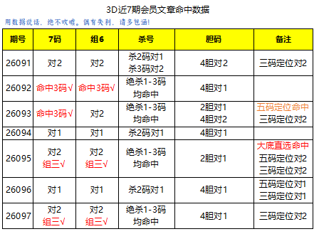 7码、组6均对2(组3全对),杀1-3码全对。